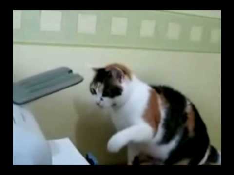 Drole de chat a l'imprimante